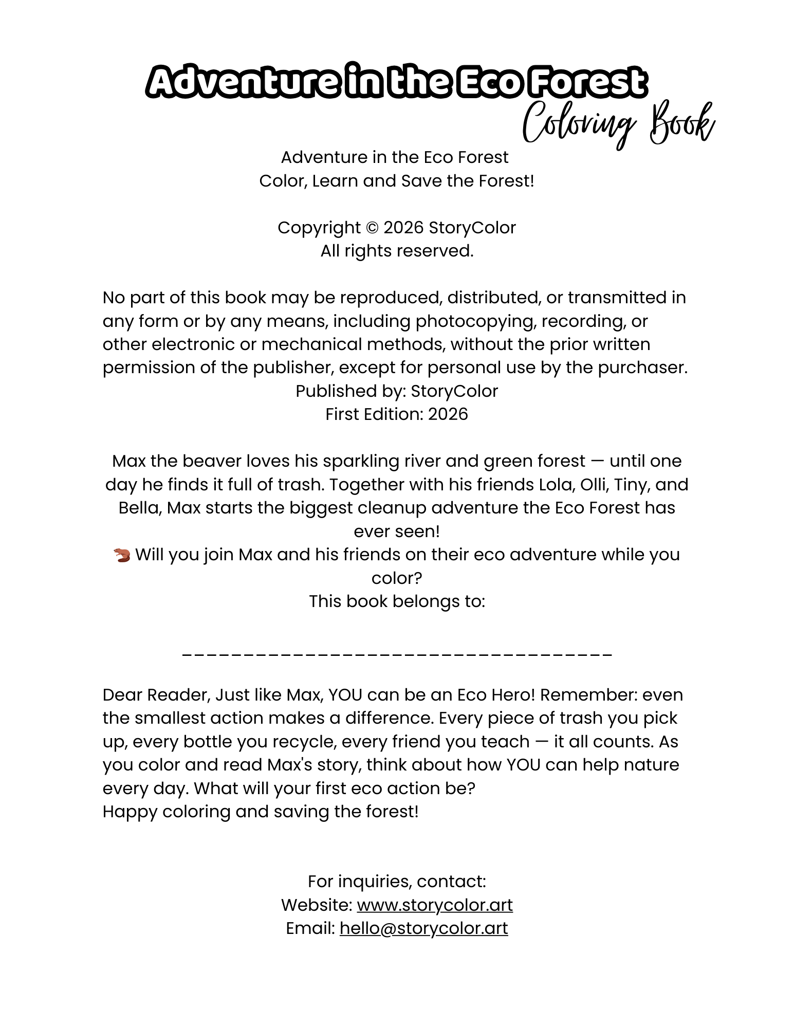 When trash invades the sparkling Eco Forest river, Max the beaver and his friends refuse to give up! Join Max, Lola, Olli, Tiny, and Bella on an exciting cleanup adventure — and discover that even the smallest action can change everything. 🌍