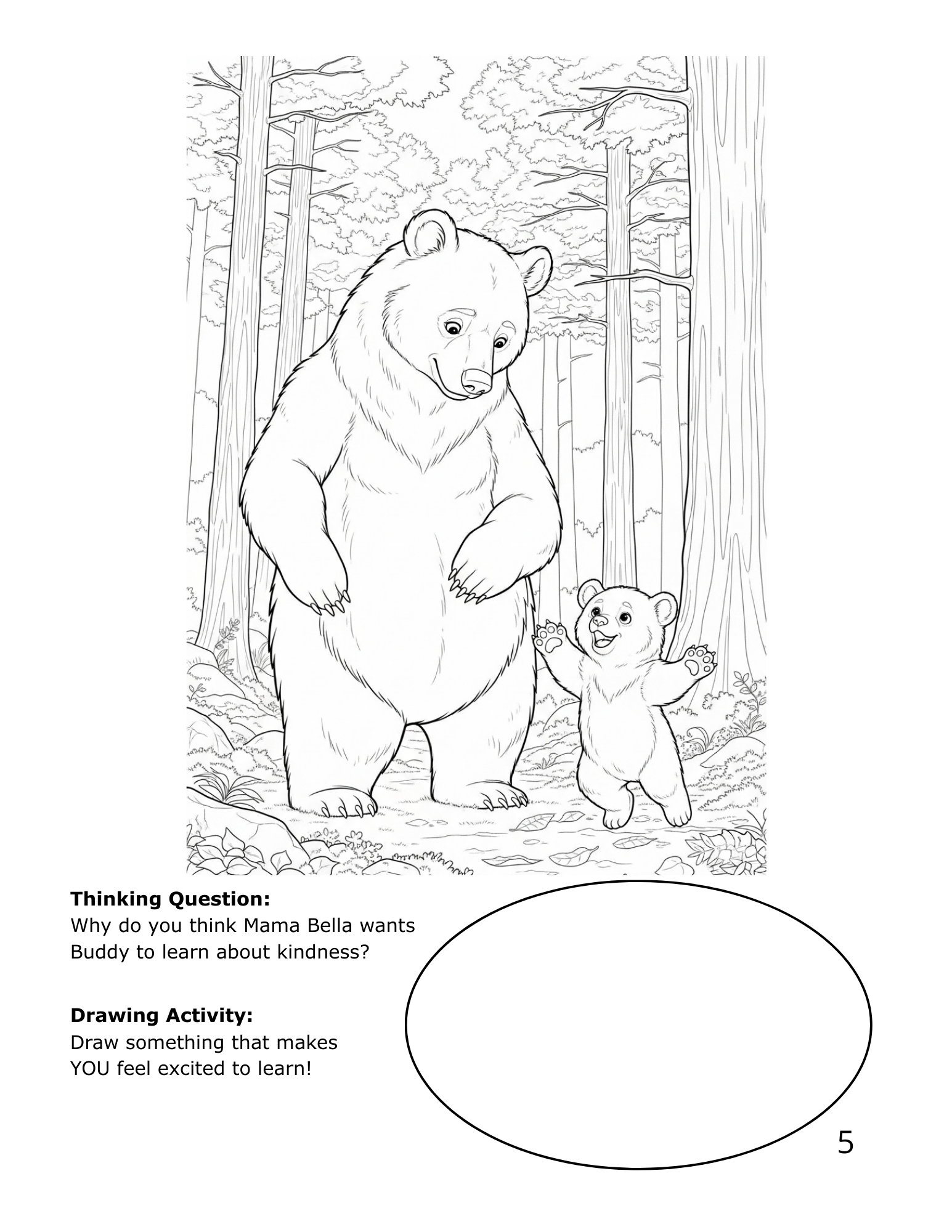 Join Buddy the bear and Mama Bella on a fun, heartwarming forest adventure! Each page combines a story to read with interactive coloring, thinking, and drawing prompts that teach kindness, empathy, and friendship.