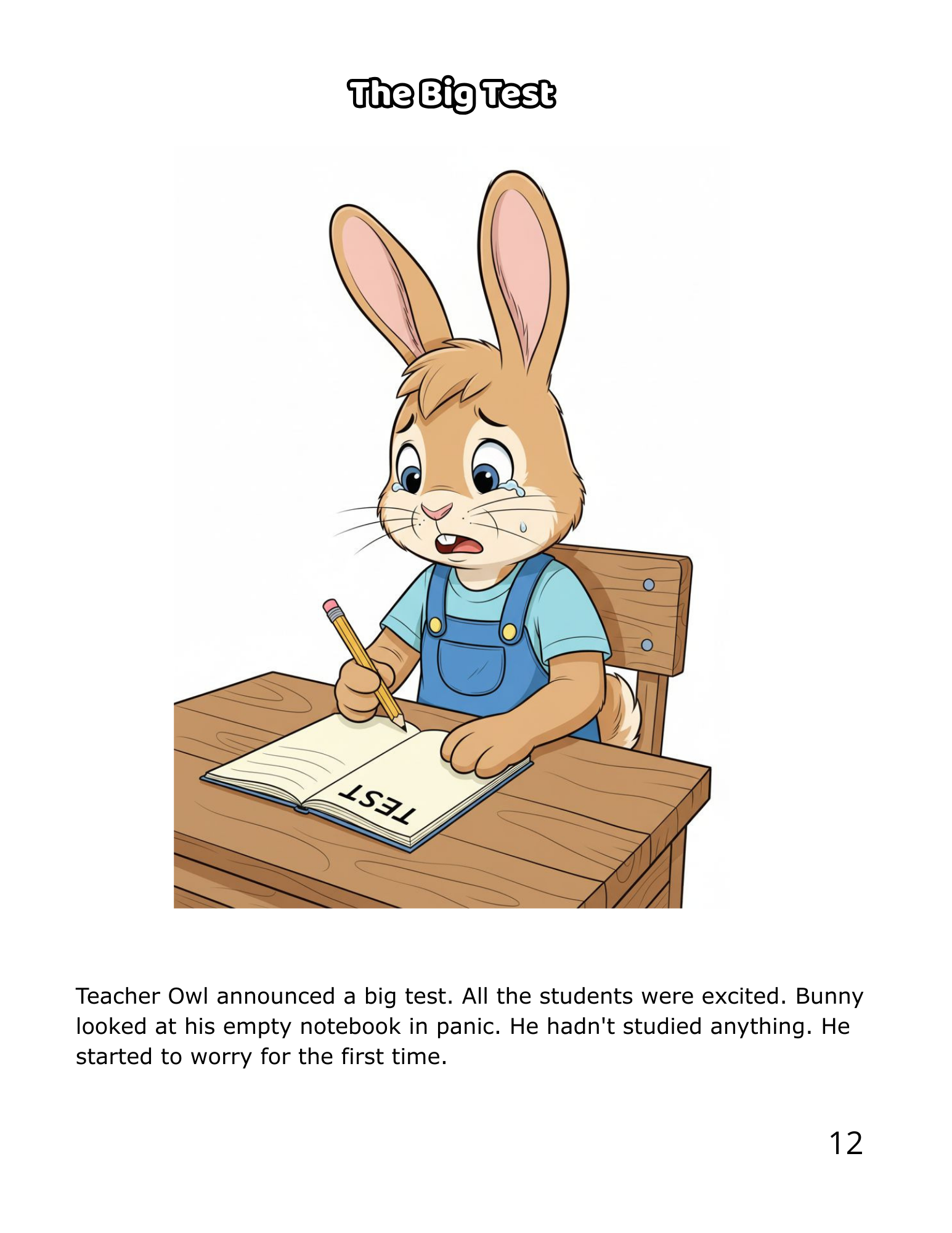 When Teacher Owl announces a big test, Bunny stares at his empty notebook in pure panic. He hasn’t written a single thing. And for the first time — he’s scared.