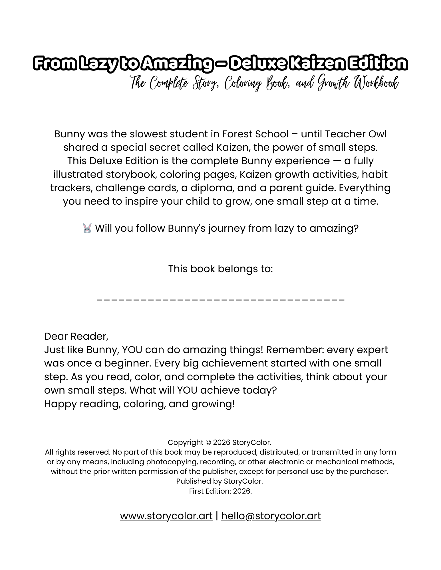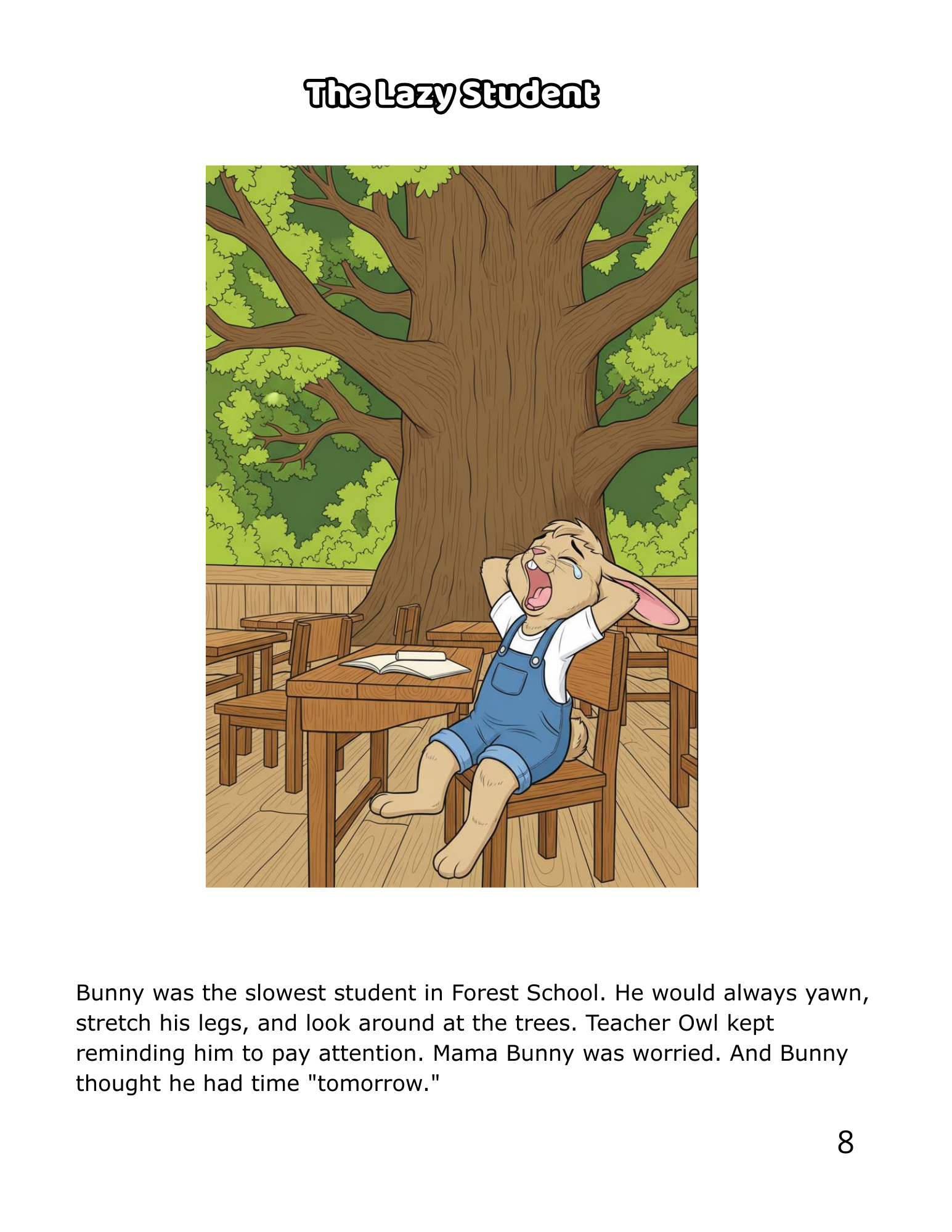 📖 24 Fully Illustrated Story Chapters The complete, uncut story of Bunny’s transformation — from his first classroom yawn to the moment he confidently raises his hand and knows the answer. Full-color illustrations your child will want to color, study, and return to again and again.