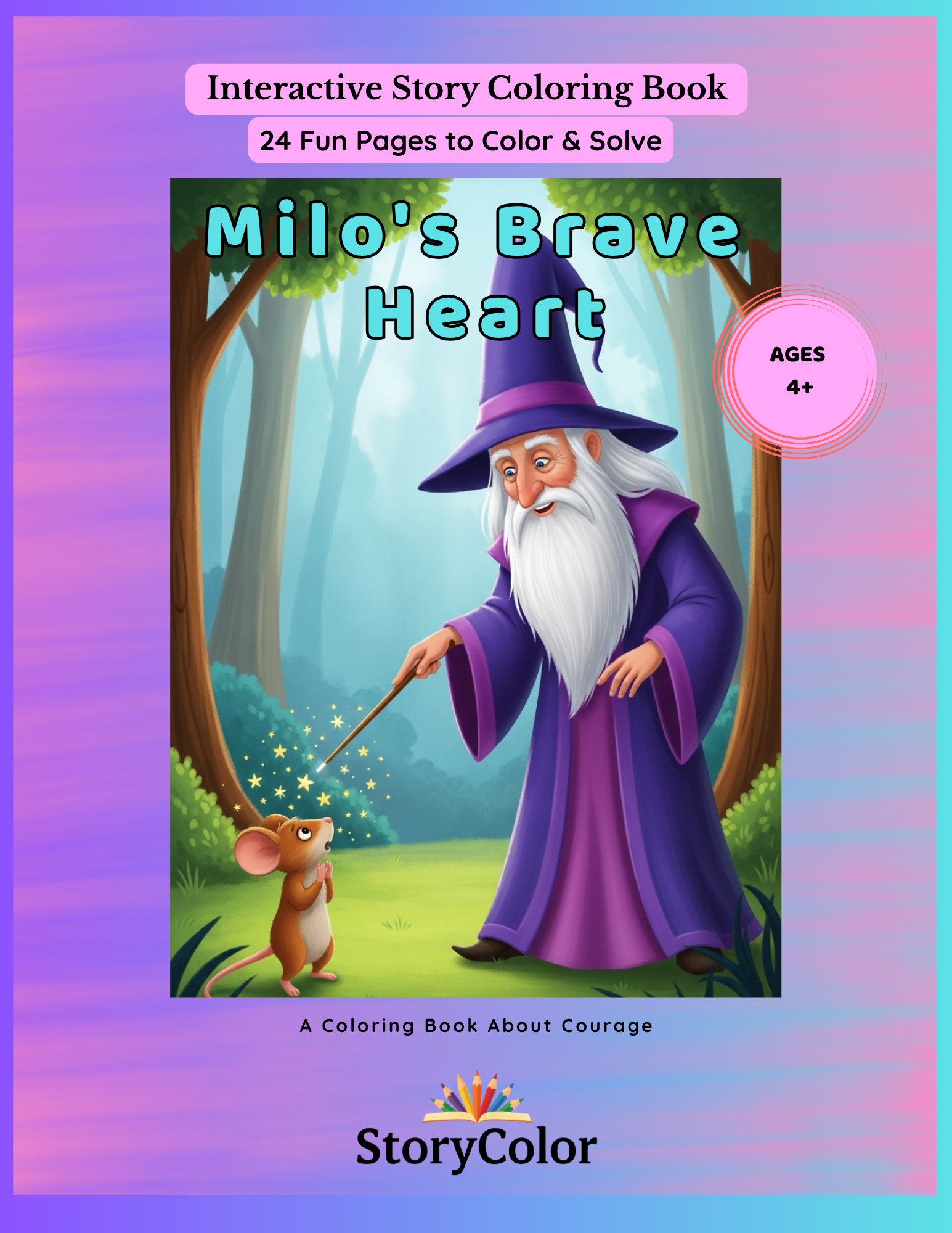 Milo’s Brave Heart is not just a coloring book — it’s a full interactive learning adventure for kids.